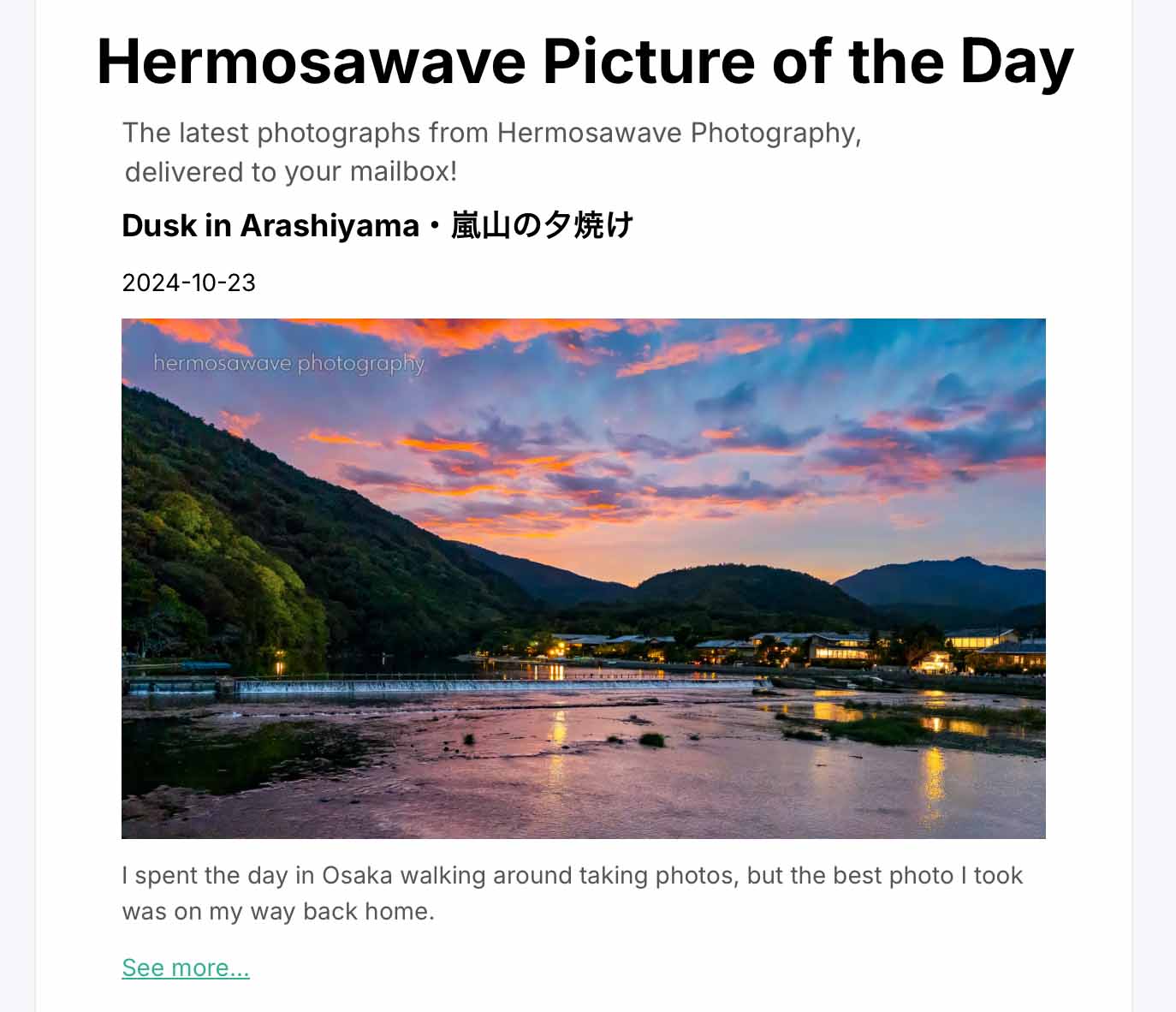 That was the idea of the Hermosawave Friends program. If offers discounts and access to special features such as desktop and phone wallpapers, and a special email photo newsletter. I enrolled everyone that supported my Empty Kyoto Kickstarter crowdfunding campaign into the program for a year, with the hope that people would like it and more supporters would join over the year.